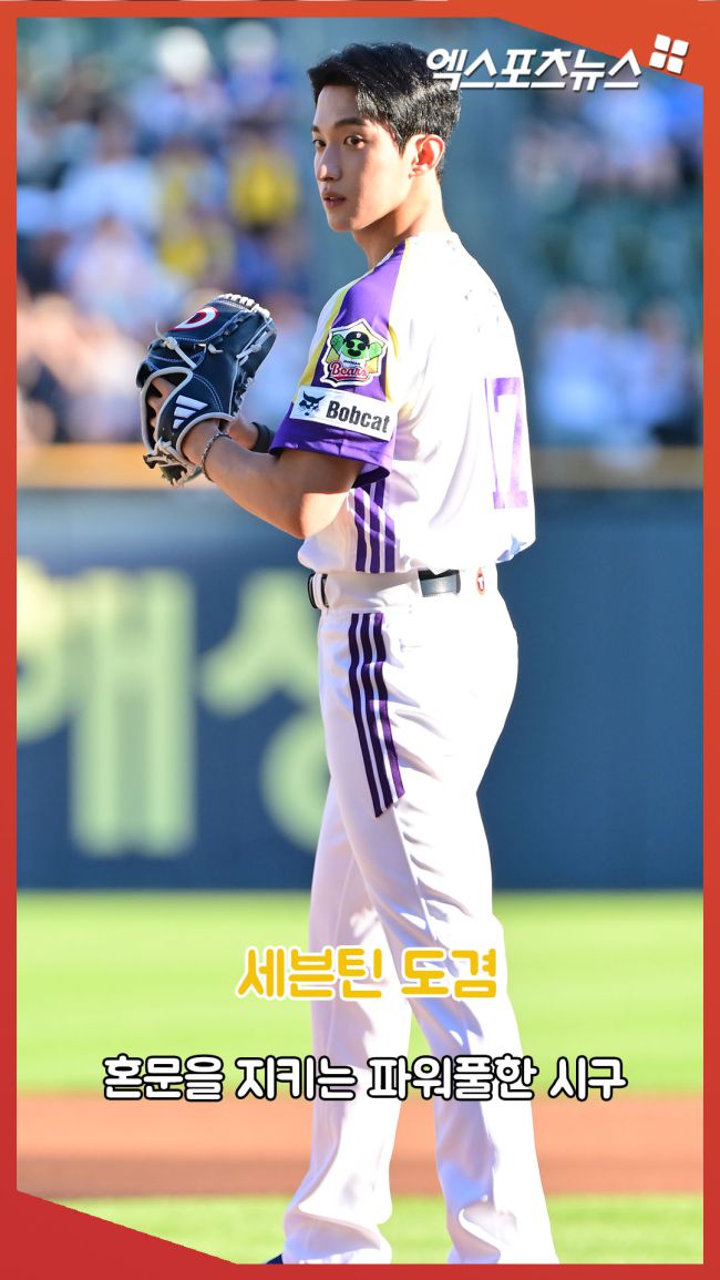 26일 오후 서울 송파구 잠실야구장에서 열린 '2025 신한 SOL Bank KBO리그' LG 트윈스와 두산 베어스의 경기, 경기 전 세븐틴 도겸이 시구에 임하고 있다. 김한준 기자 kowel@xportsnews.com