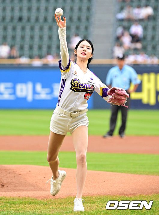 1일 오후 서울 잠실구장에서 ‘2025 신한 SOL Bank KBO리그’ 두산 베어스와 SSG 랜더스의 경기가 열렸다. 두산은 곽빈, SSG는 김광현이 선발로 나섰다. 경기에 앞서 두산 치어리더 박기량이 시구를 하고 있다. 2025.08.01 / jpnews@osen.co.kr