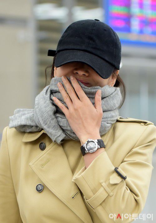결혼 반지를 착용하지 않은 송혜교가 홍콩에서 열린 `금상장영화제(Hong Kong Film Awards)` 시상식을 마치고 15일 오후 인천국제공항을 통해 입국하고 있다. /사진=김현우 기자 아시아투데이 김영진 기자 = 배우 송중기가 송혜교를 상대로 이혼 조정 절차를 신청한 가운데 결혼반지가 없던 송혜교의 모습이 다시 화제를 모으고 있다. 27일 송중기의