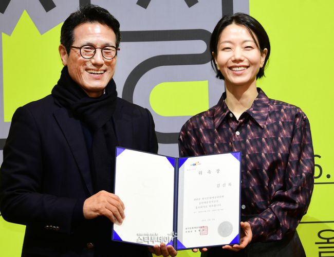 한국문화예술위원회 정병국 위원장(왼쪽)과 홍보대사 배우 김신록. ‘18회 공연예술창작산실-올해의신작’ 통합 기자간담회가 22일 오전 동숭동 대학로 아르코예술극장 대극장에서 열렸다. 이날 기자간담회에는 한국문화예술위원회 정병국 위원장과 창작산실 관계자, 18회 창작산실 홍보대사 배우 김신록 등이 참석했다. 진행은 배우 배해선이 맡았다. [ⓒ 매일경제 & mk