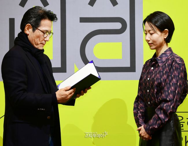 한국문화예술위원회 정병국 위원장(왼쪽)과 홍보대사로 위촉된 배우 김신록. ‘18회 공연예술창작산실-올해의신작’ 통합 기자간담회가 22일 오전 동숭동 대학로 아르코예술극장 대극장에서 열렸다. 이날 기자간담회에는 한국문화예술위원회 정병국 위원장과 창작산실 관계자, 18회 창작산실 홍보대사 배우 김신록 등이 참석했다. 진행은 배우 배해선이 맡았다. [ⓒ 매일경제