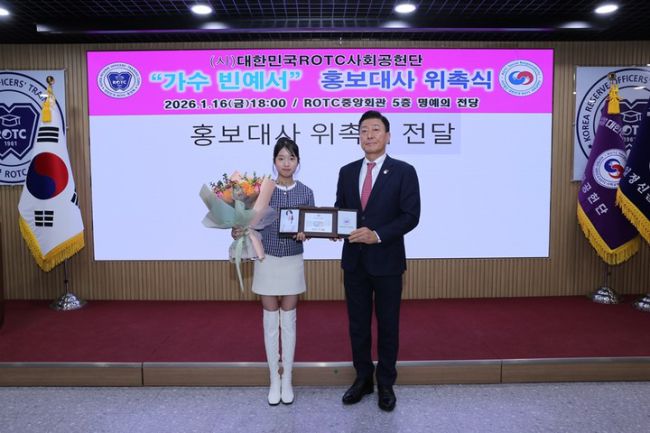 트로트 가수 빈예서가 사단법인 대한민국ROTC사회공헌단 홍보대사로 위촉됐다. 대한민국ROTC사회공헌단은 지난 16일 위촉식을 통해 빈예서를 홍보대사로 임명하고, 향후 다양한 사회 공헌 활동과 캠페인에 함께할 계획이라고 밝혔다. 이번 위촉은 대중성과 영향력을 갖춘 문화예술인을 통해 사회 공헌 활동의 취지와 가치를 널리 알리고, 국민적 공감대를 확산하기 위해