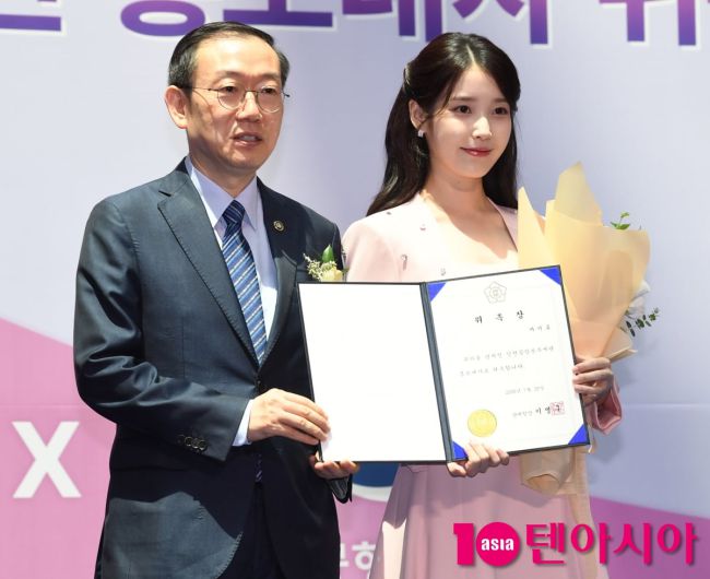 가수 겸 배우 아이유와 이명구 관세청장이 25일 인천 중구 운서동 인천국제공항에서 열린 인천공항본부세관 홍보대사 위촉식에 참석해 포즈를 취하고 있다. 조준원 기자 wizard333@tenasia.co.kr