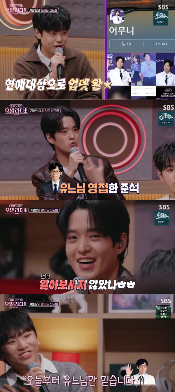 사진=SBS 무무X차차 우발라디오 캡처 '우리들의 발라드' TOP12 지성이 시상식에서 유재석의 실물을 접하고 감격스러웠던 소감을 밝혔다. 20일 방송된 SBS '무무X차차 우발라디오'에서 연말 시상식 후일담이 전해졌다. 전현무와 차태현은 "매주 보는 거지 않나. 너무 좋다. 또 연말에 연예대상에서도 만났다" "또 TOP12가 연예대상에서 축하무대를 하지