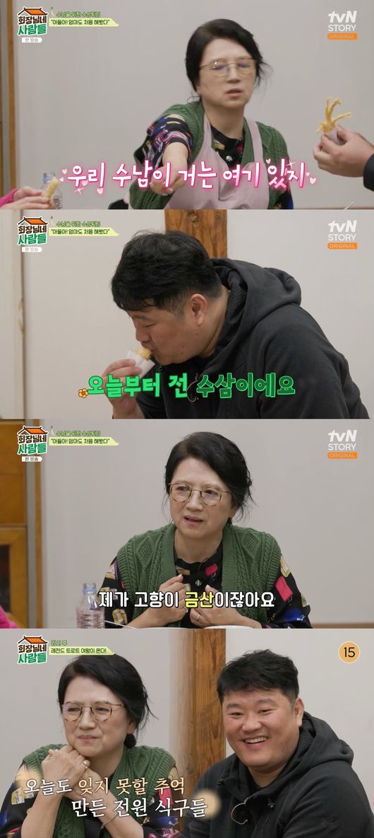 "넌 수남이고, 난 수남 엄마지". '회장님네 사람들'에서 배우 박순천과 강현종이 20년 만에 엄마와 아들로 눈물의 상봉을 이뤘다. 지난 11일 방송된 tvN STORY 예능 프로그램 '회장님네 사람들'에서는 박순천과 강현종이 드라마 '전원일기' 멤버들을 만났다. 이날 박순천은 지난해에 이어 다시 한번 '전원일기' 멤버들을 찾아왔다. 그는 "수남이가 온다고