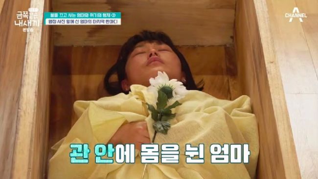 ‘금쪽같은 내새끼’ 절약집착 금쪽이 엄마가 임종 체험 중 아이들 생각에 후회의 눈물을 흘렸다. 12일에 방송된 채널A '요즘 육아 - 금쪽같은 내새끼'에서는 ‘불을 끄고 사는 엄마와 위기의 형제’ 그 두 번째 사연이 공개된 가운데 엄마는 자체 솔루션 중 새로운 문제점이 발견돼 재출연을 결심했다고 밝혔다. 앞서 금쪽이 엄마는 병적으로 절약에 집착해 모두를 충
