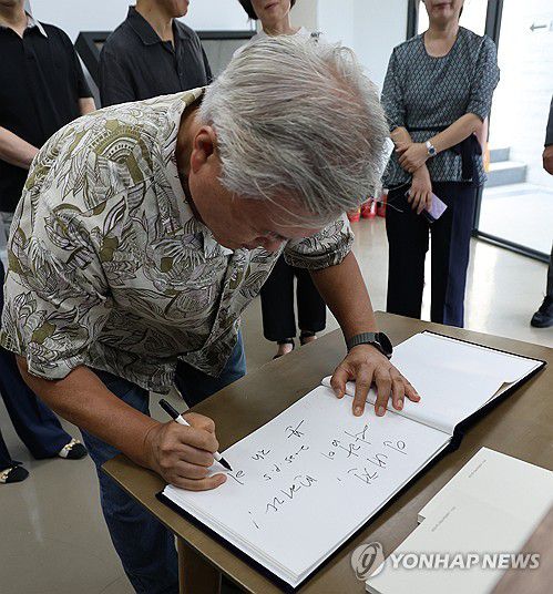방명록 적는 문재인 전 대통령
