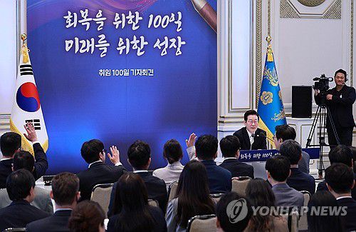 (서울=연합뉴스) 김도훈 기자 = 이재명 대통령이 11일 청와대 영빈관에서 열린 취임 100일 기자회견 '회복을 위한 100일, 미래를 위한 성장'에서 취재진의 질문을 받고 있다. 2025.9.11 [대통령실통신사진기자단] superdoo82@yna.co.kr ▶제보는 카카오톡 okjebo ▶연합뉴스 앱 지금 바로 다운받기~ ▶네이버 연합뉴스 채널 구독하기