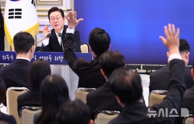 [서울=뉴시스] 고범준 기자 = 이재명 대통령이 11일 청와대 영빈관에서 열린 취임 100일 기자회견 '회복을 위한 100일, 미래를 위한 성장'에서 취재진 질문을 받고 있다. (대통령실통신사진기자단) 2025.09.11. bjko@newsis.com [사진 영상 제보받습니다] 공감언론 뉴시스가 독자 여러분의 소중한 제보를 기다립니다. 뉴스 가치나 화제성이