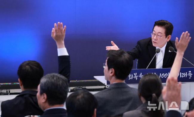 [서울=뉴시스] 고범준 기자 = 이재명 대통령이 11일 청와대 영빈관에서 열린 취임 100일 기자회견 '회복을 위한 100일, 미래를 위한 성장'에서 취재진 질문을 받고 있다. 2025.09.11. bjko@newsis.com [사진 영상 제보받습니다] 공감언론 뉴시스가 독자 여러분의 소중한 제보를 기다립니다. 뉴스 가치나 화제성이 있다고 판단되는 사진 또