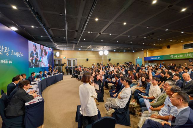 (서울=뉴스1) 이재명 기자 = 이재명 대통령이 지난 12일 강원 춘천시 강원창작개발센터에서 열린 '강원의 마음을 듣다' 타운홀 미팅에서 참석자들의 질문을 받고 있다. (이재명 대통령 SNS. 재판매 및 DB 금지) 2025.9.13/뉴스1 2expulsion@news1.kr Copyright ⓒ 뉴스1. All rights reserved. 무단 전재 및