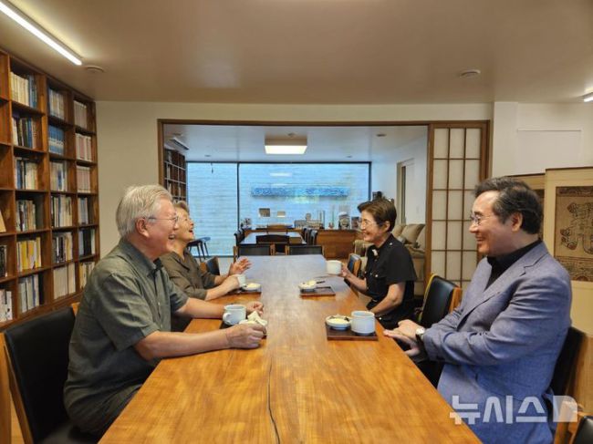 [서울=뉴시스]12일 경남 양산 평산마을에서 문재인 전 대통령 부부와 이낙연 전 국무총리 부부가 환담을 나누는 모습. (사진 = 이낙연 새미래민주당 상임고문 SNS 캡처) [서울=뉴시스]박지혁 기자 = 문재인 전 대통령이 이낙연 전 국무총리를 만나 환대하는 사진이 공개된 것을 두고 이언주 더불어민주당 최고위원이 '부적절했다'는 취지로 비판했다. 이 최고위원