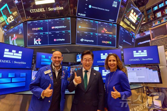 (서울=뉴스1) 이재명 기자 = 이재명 대통령이 25일(현지시간) 미국 뉴욕 증권거래소를 방문해 린 마틴 뉴욕 증권거래소 회장과 기념촬영을 하고 있다. (대통령실 제공. 재판매 및 DB 금지) 2025.9.28/뉴스1 2expulsion@news1.kr Copyright ⓒ 뉴스1. All rights reserved. 무단 전재 및 재배포, AI학습 이용