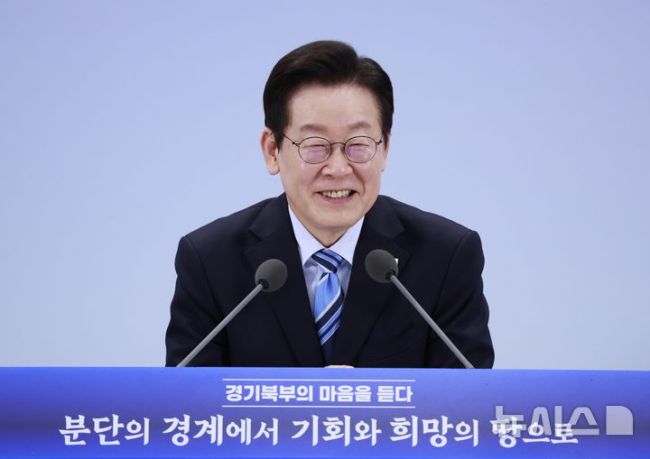 [파주=뉴시스] 최동준 기자 = 이재명 대통령이 14일 경기 파주시 라이브러리스테이 지지향에서 열린 '경기 북부의 마음을 듣다' 타운홀 미팅에서 발언하고 있다. 2025.11.14. photocdj@newsis.com [서울=뉴시스]조재완 기자 = 이재명 대통령은 14일 "경기 북부가 특별히 국가 전체를 위해서 피해를 입었는데 문제 해결을 비롯해 경기 북부