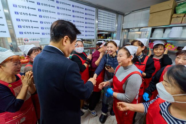 [서울=뉴시스] 최동준 기자 = 이재명 대통령이 30일 국무회의 참석자들과 오찬을 하기 위해 서울 삼청동의 한 수제비 식당을 방문해 직원들과 인사하고 있다. (사진=청와대 제공) 2025.12.30. photo@newsis.com *재판매 및 DB 금지 [사진 영상 제보받습니다] 공감언론 뉴시스가 독자 여러분의 소중한 제보를 기다립니다. 뉴스 가치나 화제성