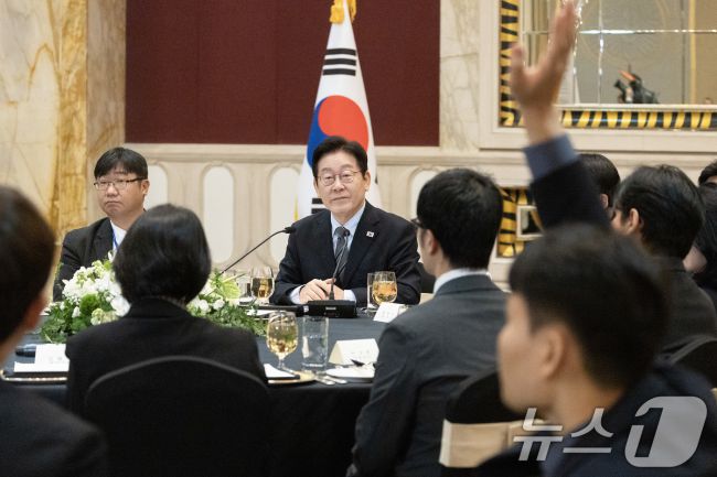 (상하이(중국)=뉴스1) 허경 기자 = 중국을 국빈방문 중인 이재명 대통령이 7일 상하이시에서 열린 순방기자단 오찬간담회에서 취재진 질문을 받고 있다. 2026.1.7/뉴스1 2expulsion@news1.kr Copyright ⓒ 뉴스1. All rights reserved. 무단 전재 및 재배포, AI학습 이용 금지.