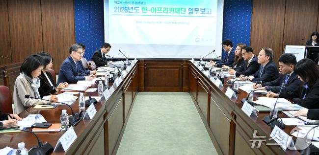외교부는 8일 산하기관인 한·아프리카재단으로부터 2026년도 업무보고를 받고, 재단의 2025년도 업무 추진 성과와 올해 주요 추진 과제를 점검했다. 2025.01.08. (외교부 제공) (서울=뉴스1) 정윤영 기자 = 조현 외교부 장관은 8일 외교부 산하기관인 한·아프리카재단으로부터 올해 업무보고를 받고 이재명 대통령에게 조기 아프리카 방문을 건의할 계획