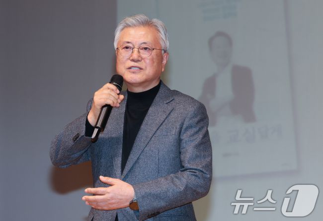 문재인 전 대통령이 17일 대전 서구 배재대에서 열린 김한수 전 배재대 부총장 출판기념회에 참석해 축사를 하고 있다. 2026.1.17/뉴스1 ⓒ News1 김기태 기자 (대전=뉴스1) 김기태 기자 = 문재인 전 대통령은 17일 “행정통합은 교육자치를 보장하고 한층 발전시키는 방향으로 추진돼야 한다”며 교육자치를 명시적으로 담은 특별법 제정을 강조했다. 문