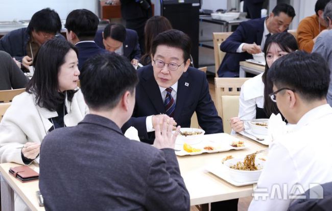 청와대 춘추관 식당 방문한 이재명 대통령