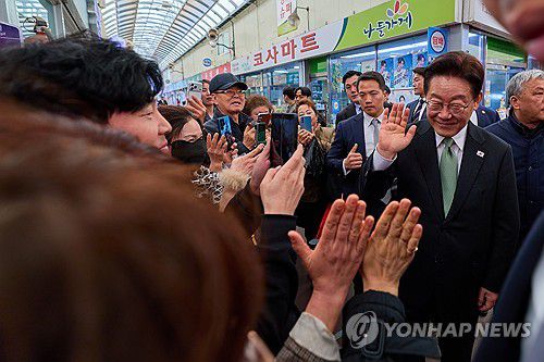 (서울=연합뉴스) 이재명 대통령이 13일 충북 청주시 서원구 사창시장을 찾아 상인 및 시민과 인사를 하고 있다. 2026.3.13 [청와대 제공. 재판매 및 DB 금지] photo@yna.co.kr ▶제보는 카카오톡 okjebo ▶연합뉴스 앱 지금 바로 다운받기~ ▶네이버 연합뉴스 채널 구독하기 <저작권자(c) 연합뉴스, 무단 전재-재배포, AI 학습 및