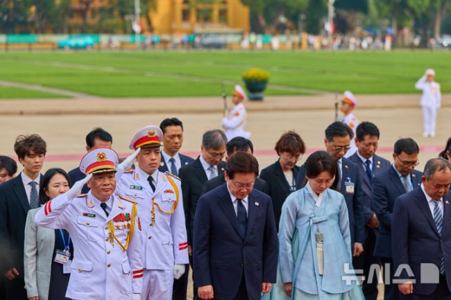 [하노이=뉴시스] 고범준 기자 = 이재명 대통령과 김혜경 여사가 22일(현지 시간) 베트남 하노이 호치민 묘소를 방문해 묵념하고 있다. (공동취재) 2026.04.23. bjko@newsis.com [사진 영상 제보받습니다] 공감언론 뉴시스가 독자 여러분의 소중한 제보를 기다립니다. 뉴스 가치나 화제성이 있다고 판단되는 사진 또는 영상을 뉴시스 사진영상부(