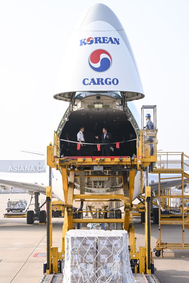 [인천공항=뉴시스] 윤석열 대통령이 추석 연휴 첫날인 28일 인천국제공항 대한항공 화물터미널을 방문해 일본 도쿄행 화물기에 탑승, 기장으로부터 화물기 운항계획을 보고받고 있다. (사진=대통령실 제공) 2023.09.28. photo@newsis.com *재판매 및 DB 금지 [사진 영상 제보받습니다] 공감언론 뉴시스가 독자 여러분의 소중한 제보를 기다립니다