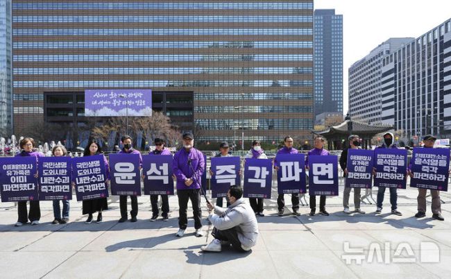 광화문광장에서 윤 대통령 탄핵 촉구 피켓팅하는 이태원 참사 유가족협의회
