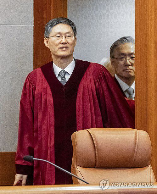 (서울=연합뉴스) 문형배 헌법재판소장 권한대행이 4일 서울 종로구 헌법재판소 대심판정에서 열린 윤석열 대통령 탄핵심판 선고에 입장하고 있다. 2025.4.4 [사진공동취재단] photo@yna.co.kr ▶제보는 카카오톡 okjebo ▶연합뉴스 앱 지금 바로 다운받기~ ▶네이버 연합뉴스 채널 구독하기 <저작권자(c) 연합뉴스, 무단 전재-재배포, AI 학습