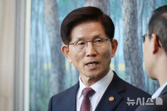 대통령 출마 관련 기자들 질문에 답하는 김문수 장관
