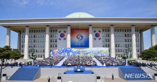 [서울=뉴시스] 김선웅 기자 = 지난 2022년 5월 10일 오전 서울 여의도 국회에서 열린 윤석열 제20대 대통령의 취임식. (사진=뉴시스DB). 2022.05.10. photo@newsis.com [세종=뉴시스]성소의 기자 = 당선 즉시 임기를 시작하게 되는 차기 대통령은 비교적 간소하게 취임식을 치를 것으로 보인다. 행정안전부는 문재인 전 대통령 취임