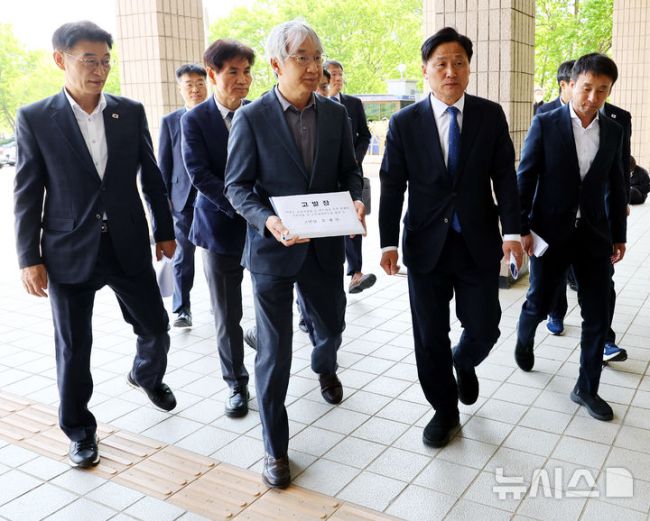 [서울=뉴시스] 박주성 기자 = 더불어민주당 前정권정치탄압대책위원회 김영진 위원장과 의원들, 문재인 전 대통령 변호인단이 30일 오전 문재인 전 대통령 수사 관련 불법 행위 검사 등 고발장 제출을 위해 경기 과천시 공수처로 들어오고 있다. 2025.04.30. park7691@newsis.com [사진 영상 제보받습니다] 공감언론 뉴시스가 독자 여러분의 소