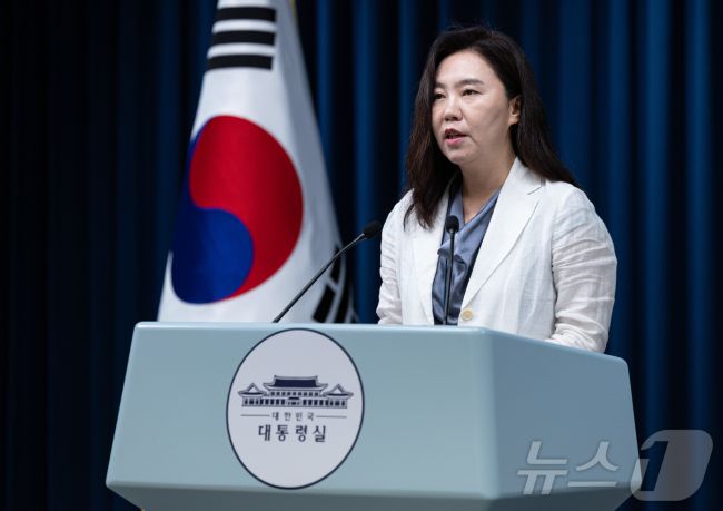 강유정 대통령실 대변인이 13일 서울 용산 대통령실 청사에서 차관급 인선 관련 브리핑을 하고 있다. 2025.7.13/뉴스1 ⓒ News1 이재명 기자 (서울=뉴스1) 한재준 한병찬 기자 = 강유정 대통령실 대변인은 14일 '보좌진 갑질 의혹'이 제기된 강선우 여성가족부 장관 후보자와 관련해 "(인사청문회가) 끝나고 나서 전체적인 흐름을 봐야 입장도 낼 수