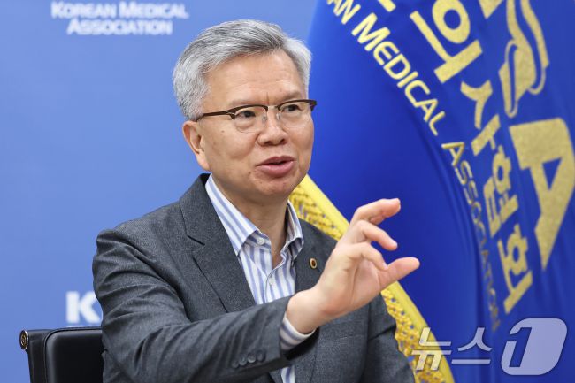 김택우 대한의사협회 회장. 2025.7.15/뉴스1 ⓒ News1 민경석 기자 (서울=뉴스1) 강승지 기자 = 대한의사협회(의협)는 15일 의료공백 보완 대책을 마련하라는 이재명 대통령의 주문에 공감하면서 "조속한 의료 정상화가 필요하다"고 밝혔다. 의협은 이날 입장문을 내고 "보건의료 전문가 단체로서 올바른 정책과 제도가 마련될 수 있도록 적극 협력하겠다
