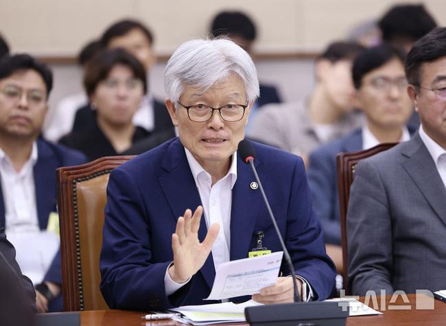 [서울=뉴시스] 김명년 기자 = 최동석 인사혁신처장이 지난 22일 오후 서울 여의도 국회에서 열린 법제사법위원회 전체회의에서 의원 질문에 답변하고 있다. 2025.07.22. kmn@newsis.com [서울=뉴시스] 강지은 정예빈 기자 = 이재명 정부 초대 인사혁신처장(차관급)으로 취임한 최동석(69) 신임 인사처장의 과거 발언과 자질 논란이 좀처럼 사그