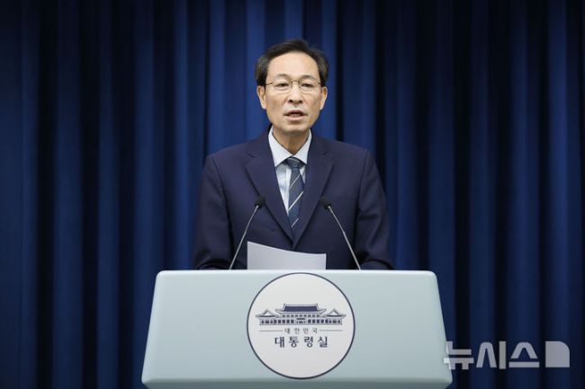 [서울=뉴시스] 최동준 기자 = 우상호 정무수석이 28일 서울 용산 대통령실에서 오는 8월 15일 광화문 광장에서 개최되는 '대통령 국민 임명식' 관련 브리핑을 하고 있다. 2025.07.28. photocdj@newsis.com [서울=뉴시스]조재완 김경록 기자 = 이재명 대통령의 이른바 '국민임명식'이 내달 15일 광화문에서 열린다. 우상호 대통령실 정