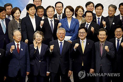 (서울=연합뉴스) 박동주 기자 = 문재인 전 대통령과 김정숙 여사, 우원식 국회의장 등 참석자들이 25일 서울 여의도 국회도서관에서 열린 4.27 판문점선언 7주년 기념식에서 기념촬영을 하고 있다. 2025.4.25 [공동취재] pdj6635@yna.co.kr ▶제보는 카카오톡 okjebo ▶연합뉴스 앱 지금 바로 다운받기~ ▶네이버 연합뉴스 채널 구독하기