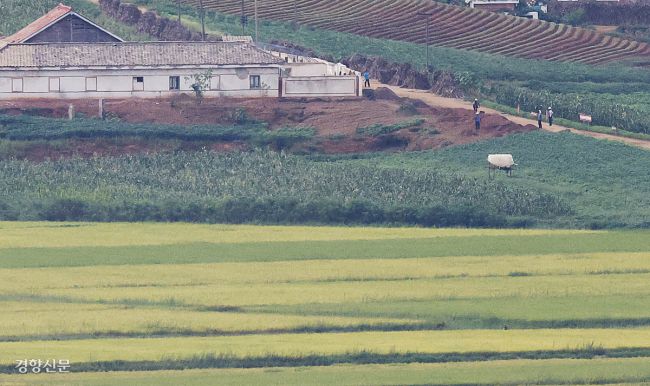 가을 기운이 완연히 나타난다는 절기 ‘백로’였던 지난 7일 경기 파주시 오두산통일전망대를 찾았다. 휴일이라 그런지 방문객들의 차량 행렬이 끝없이 이어졌다. 카메라와 망원렌즈를 들고 사람들과 섞여 옥상 전망대에 올랐다. 이른 새벽 한 차례 비가 내려서일까. 넓게 트인 시야에 펼쳐지는 파란 하늘은 기분을 상쾌하게 만들었다. 사람들은 북쪽으로 설치된 망원경에 얼