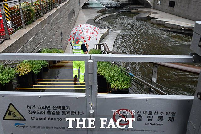 '폭염 가니 다시 폭우' 통제되는 청계천 [TF사진관]