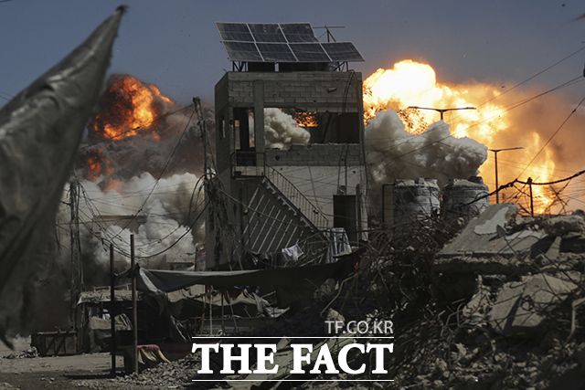 가자시티 장악을 위해 지상전을 준비하고 있는 이스라엘군이 13일(현지시각) 가자시티의 한 건물을 공습해 불길과 연기가 치솟고 있다./가자시티=AP.뉴시스 이스라엘군 공습에 대피하는 가자시티 주민들. /가자시티=AP.뉴시스 이스라엘군이 가자지구 북부의 가자시티 장악을 위해 지상전을 준비하는 가운데 주민 4분의 1 가량인 25만명이 대피를 마쳤다. 아비차이 아