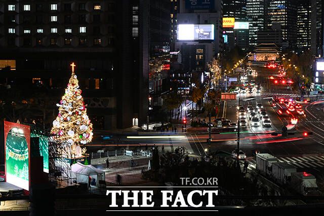 2025 대한민국 성탄 축제 ‘성탄트리 점등식’이 17일 오후 서울 중구 서울시청 앞 서울광장에서 열린 가운데 성탄트리가 환하게 불을 밝히고 있다. /서예원 기자 2025 대한민국 성탄 축제 ‘성탄트리 점등식’이 17일 오후 서울 중구 서울시청 앞 서울광장에서 열린 가운데 성탄트리가 환하게 불을 밝히고 있다. 서울광장 성탄 트리는 1960년대 처음 설치돼