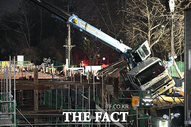 18일 오후 서울 송파구 잠실대교 남단 나들목(IC) 연결체계 개선공사 현장에 크레인이 쓰러져 있다. /박헌우 기자 18일 오후 서울 송파구 잠실대교 남단 나들목(IC) 연결체계 개선공사 현장에 크레인이 쓰러져 있다. 이날 오후 3시 20분께 발생한 사고로 작업중이던 노동자 1명이 크레인에 깔려 구조됐으나 사망한 것으로 파악됐다. cjg05023@tf.co
