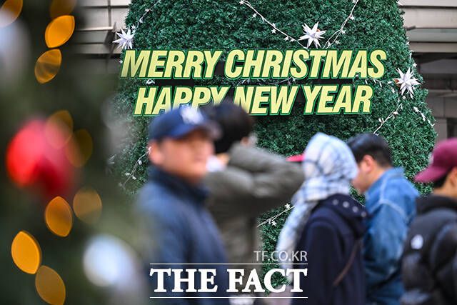 크리스마스 이브인 24일 오전 서울 중구 명동을 찾은 시민들이 걸음을 재촉하고 있다. /서예원 기자 낮부터 북적이는 명동 거리. 크리스마스 이브인 24일 오전 서울 중구 명동을 찾은 시민들이 걸음을 재촉하고 있다. 명동대성당 앞에 성탄 구유가 설치돼 있다. 경찰은 성탄절을 맞아 시간당 최대 2만 명 이상 모일 것으로 예상되는 중점 관리지역 6곳에 경찰 14