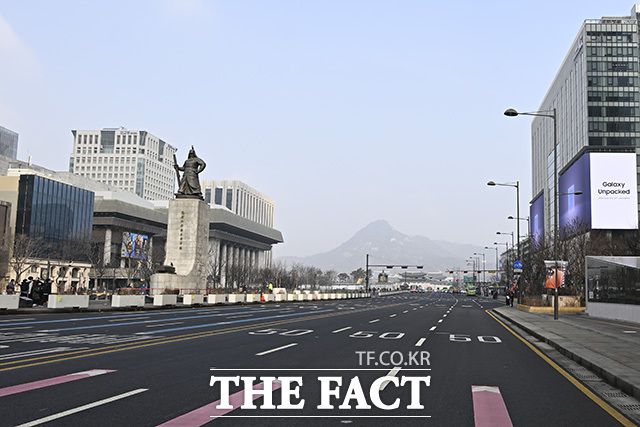 설 연휴 둘째 날인 15일 오전 서울 종로구 세종로 일대가 한산한 모습을 보이고 있다. /송호영 기자 중구 세종대로 일대가 한산한 모습을 보이고 있다. 설 연휴 둘째 날인 15일 오전 서울 종로구 세종로 일대가 한산한 모습을 보이고 있다. 한산한 도심 주요 도로와 달리 고속도로는 곳곳이 정체를 빚고 있다. 한국도로공사에 따르면 이날 오전 8시 기준 서울 요