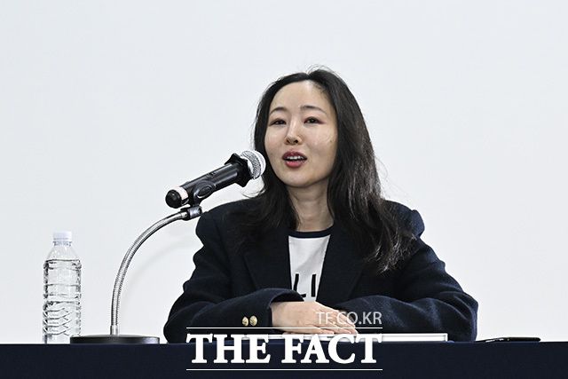민희진 오케이레코즈 대표(전 어도어 대표)가 25일 오후 서울 종로구 교원챌린지홀에서 열린 기자회견에 참석해 입장을 밝히고 있다. /송호영 기자 민 대표가 발언하고 있다. 민희진 오케이레코즈 대표(전 어도어 대표)가 25일 오후 서울 종로구 교원챌린지홀에서 열린 기자회견에 참석해 입장을 밝히고 있다. 민 대표는 이 자리에서 "저는 256억원을 다른 가치와