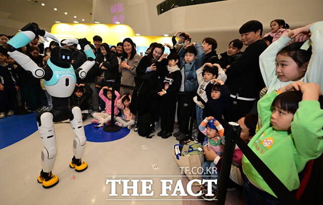 '춤추고 손하트까지' 휴머노이드 로봇과 즐거운 아이들 [TF사진관]