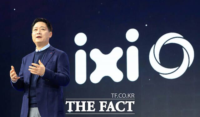 홍범식 LG유플러스 대표가 2일(현지시간) 스페인 바르셀로나 피라 그란 비아 전시장에서 열린 '모바일 월드 콩그레스(MWC)2026'에서 기조연설 하고 있다. /바르셀로나=사진공동취재단 홍범식 LG유플러스 대표(오른쪽 두 번째)가 2일(현지시간) 스페인 바르셀로나 피라 그란 비아 전시장에서 열린 '모바일 월드 콩그레스(MWC)2026'에서 삼성전자 갤럭시