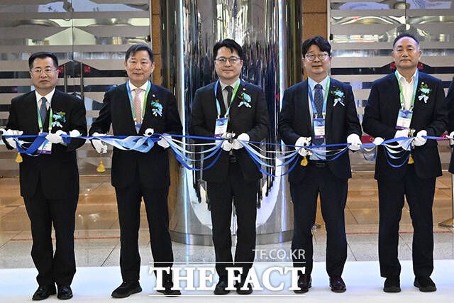 이철규 국회 산업통상자원중소벤처기업위원회(산자위) 위원장과 문신학 산업통상부 제1차관, 엄기천 한국배터리산업협회장(포스코퓨처엠 사장), 김원이 국회 산자위 민주당 간사 등(왼쪽 두 번째부터)이 11일 오전 서울 강남구 코엑스에서 개최된 '인터배터리 2026' 개막식에서 테이프 커팅을 하고 있다. /송호영 기자 문신학 산업통상부 제1차관이 축사를 하고 있다.