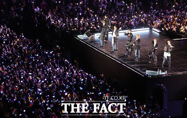 방탄소년단(BTS)이 21일 서울 광화문광장에서 컴백 기념 공연인 ‘BTS 컴백 라이브: 아리랑’ 공연을 펼치고 있다. /사진공동취재단 그룹 방탄소년단(BTS)이 21일 오후 서울 광화문 광장에서 정규 5집 '아리랑(ARIRANG)' 앨범 발매를 기념해 마련된 컴백 무대에 올라 화려만 퍼포먼스를 선보이고 있다. BTS의 컴백쇼 'ARIRANG'은 이날 오후