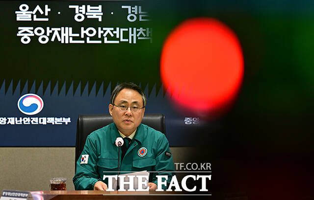 고기동 중앙재난안전대책본부장(행정안전부 장관 권한대행)이 25일 오전 서울 종로구 정부서울청사에서 열린 울산·경북·경남 산불대응 중앙재난안전대책본부 4차 회의에 참석해 모두발언을 하고 있다. /임영무 기자 고기동 중앙재난안전대책본부장(행정안전부 장관 권한대행)이 25일 오전 서울 종로구 정부서울청사에서 열린 울산·경북·경남 산불대응 중앙재난안전대책본부 4차