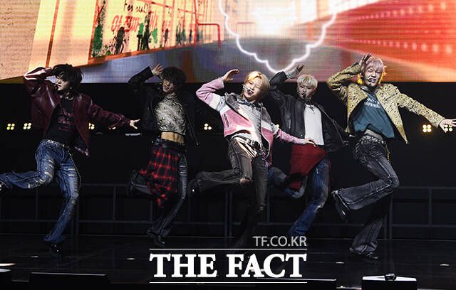 그룹 TNX(티엔엑스)가 26일 오후 서울 서대문구 예스24 원더로크홀에서 열린 미니 4집 'For Real?(포 리얼?)' 발매 기념 쇼케이스에 참석해 타이틀곡 '아 진짜(For Real?)' 무대를 선보이고 있다. /서예원 기자 그룹 TNX(티엔엑스)가 26일 오후 서울 서대문구 예스24 원더로크홀에서 열린 미니 4집 'For Real?(포 리얼?)'